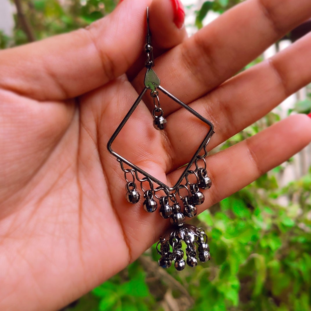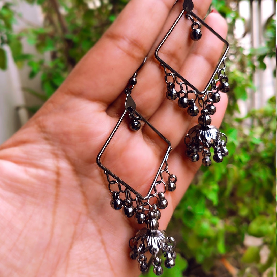 Square Shape Black Steel Long Earrings